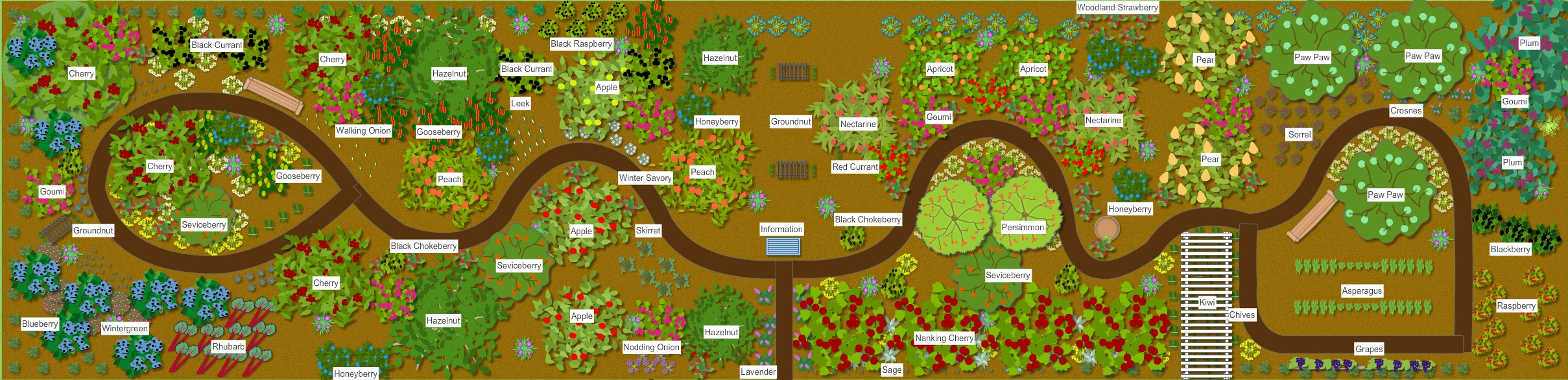 “The plants we’ve chosen will collect and cycle Earth’s minerals, water, and air; shade the soil and renew it with leafy mulch; and yield fruits and greens for people and wildlife.”